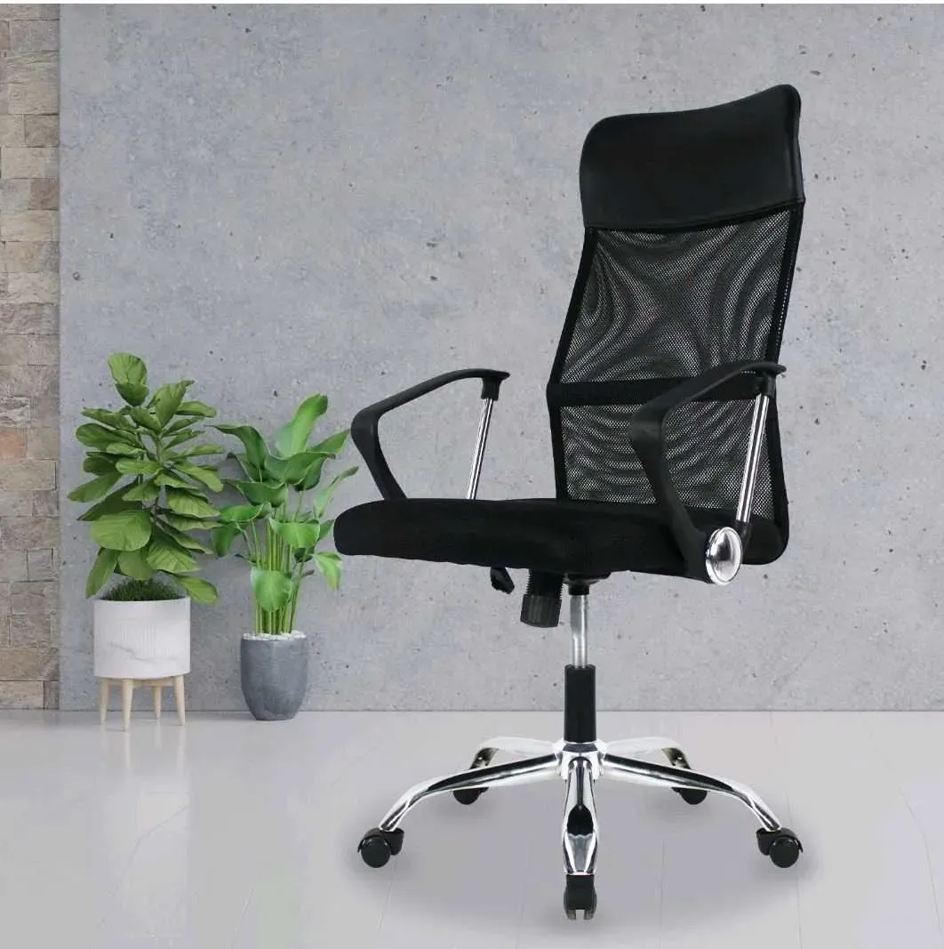 Silla ejecutiva clásica, forrada de la clásica tela tipo “mesh”.